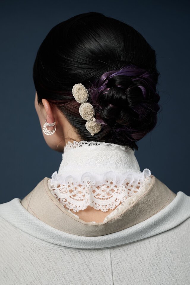 ビーズの小さな煌めきが、髪もとをさりげなく、そして華やかに演出してくれます。