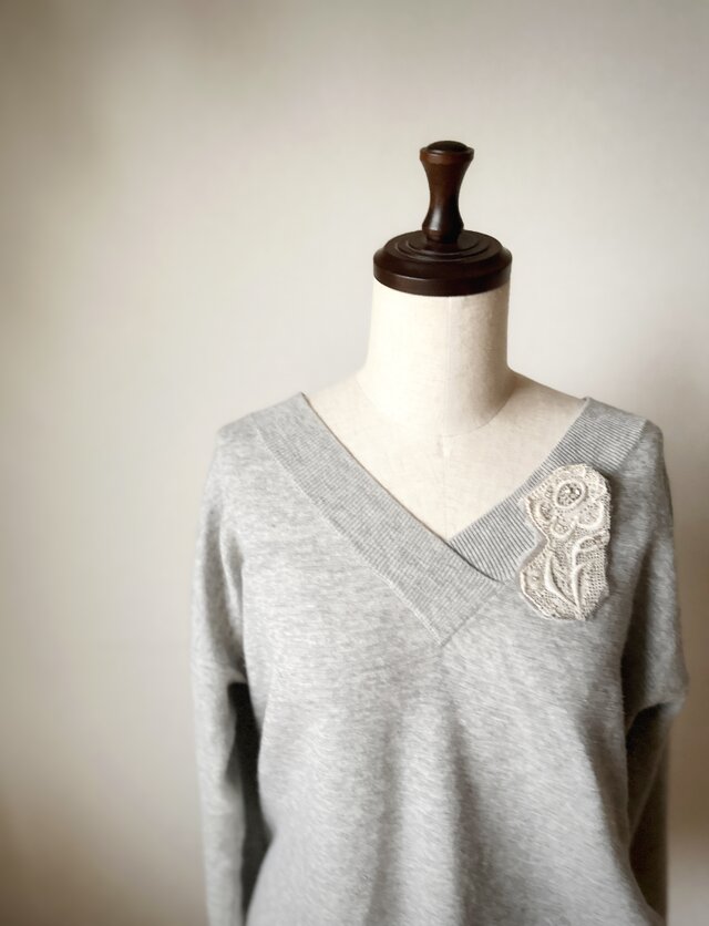 存在感のある花モチーフのアンティークレースを用いたブローチです。