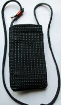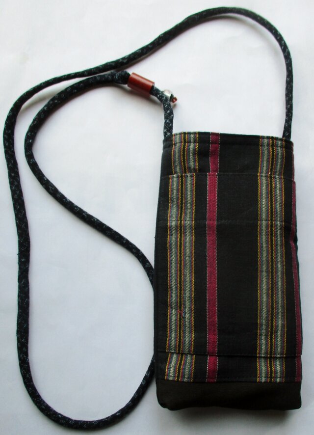 中袋に男絣を使い、外ポケットと内ポケットを一つずつ付けています。