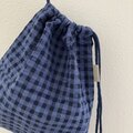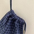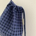 チェック模様の綿麻素材を使って巾着袋つくりました。肌触りの良い綿麻素材をシンプルに仕上げました。