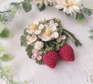 上質なレース糸や刺繡糸で編んだ苺やお花たちをストールピンにお仕立てしました。