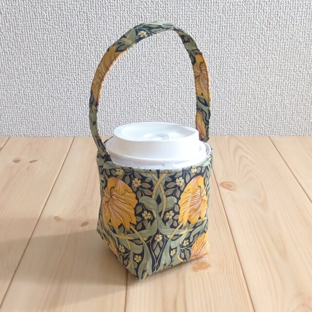 modaウィリアムモリスの生地を使用して製作した、コンビニなどでテイクアウト用の、ホットコーヒーなどの保温バッグです。