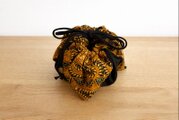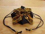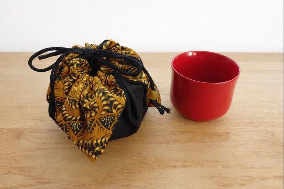 外袋は黒無地の大島紬、内袋はオールドバテック(木綿))です。紐にはアンティークビーズを付けました。