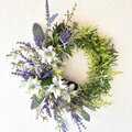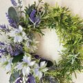 清楚な色合いのラベンダーとニゲラでアレンジしたデザインリースです。