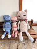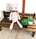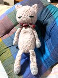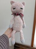 ピンク系のふんわりしたモヘア糸に極細のアイボリーの糸を合わせてねこちゃん編んでみました。
