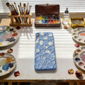本作品は、オリジナル油絵をもとに、ケース一点一点に直接油絵具で描いています。