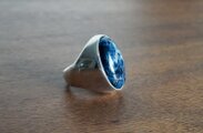青い惑星のような模様が美しいブルーピーターサイトのリングです。