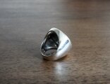 このリングは、腕の部分のボリュームがあるため、普段のサイズより1~2号ほど大き目のサイズをお勧めしますが、石留の前に一度ご試着をお願いさせていただければと思います。(写真は石留をする前の状態です。縁を倒して覆輪留にいたします)
