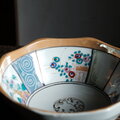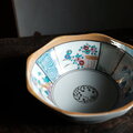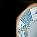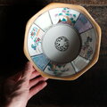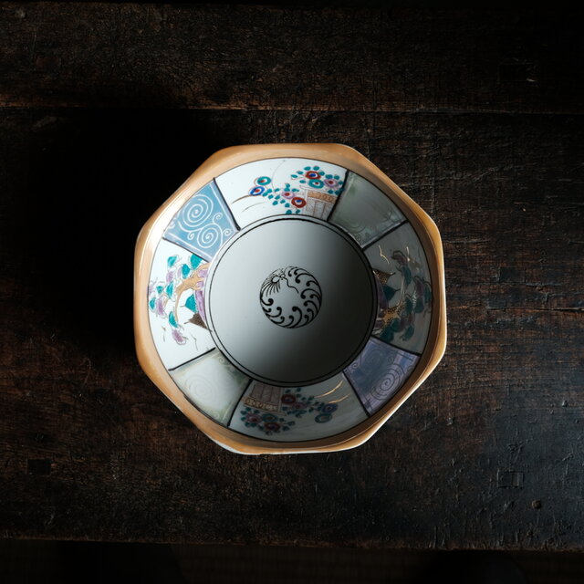 カラフルで可愛い◆見込みに龍。瀬戸焼 色絵金彩八角鉢 骨董・antiques 花 松 渦巻 大正時代