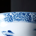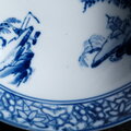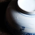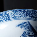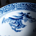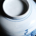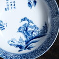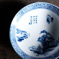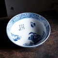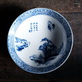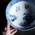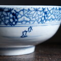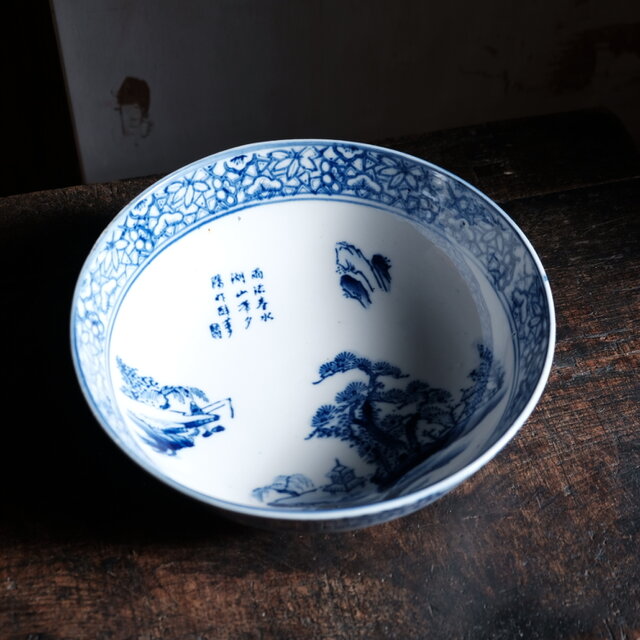 漢文と風景図◆縁に松竹梅。瀬戸焼 時代染付印判大鉢 碗 骨董・antiques 古民家 大正〜昭和初期