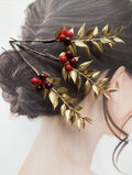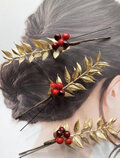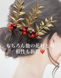 南天ルスカスゴールドリーフ髪飾りピック×3本