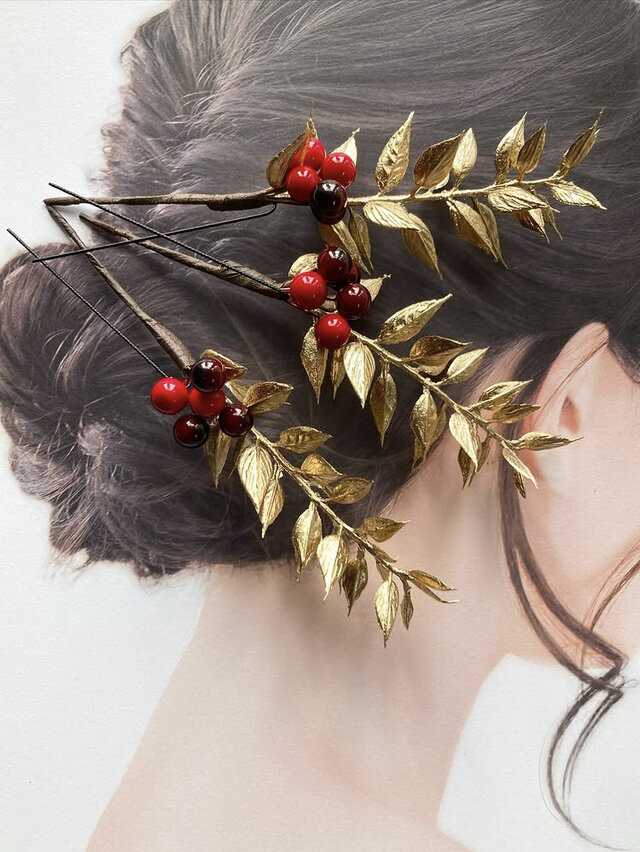 華やかな南天ゴールドルスカスリーフ髪飾りがリニューアルしました。