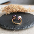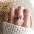 アメジスト×クンツァイト 濃淡パープルのフォークリング|天然石リング 金アレ対応