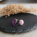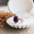 透明感のある、ピンクにほんのりパープルを溶かしたような上品な色合いがアメジストの存在感をやさしく引き立てます。