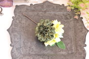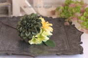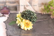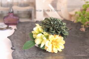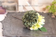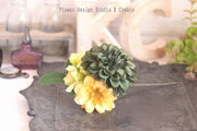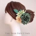 モスグリンと黄色のダリアと紫陽花の髪飾り フラメンコ アジサイ 黄色 深緑 黄緑 フローレス ダンス グリン ダリア