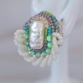 とても軽いおゃべりなブローチ2 ビーズ刺繍のブローチ カラフル グレー写真で拝見するより実物は細かく細部に亘って丁寧に繊細にセンスよく…もう脱帽です。これからの季節大活躍のブローチとリングです。 もう出会って10年以上と思いますが、どんどん進化しチャレンジを怠らない姿勢にこれからも期待してます。