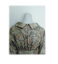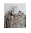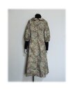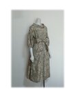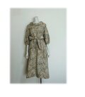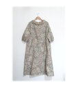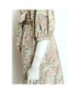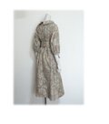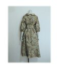 479 レトロなロールカラーワンピース 大島紬 ベージュ系 花柄 サッシュベルト付き 正絹