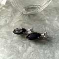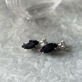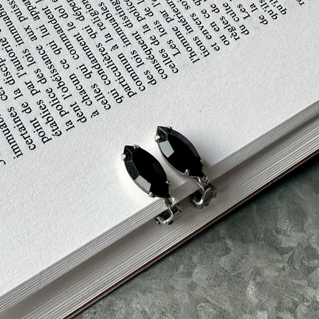 マーキスカットのブラックラインストーンを爪留めしたシンプルかつ力強いデザインのイヤリング。