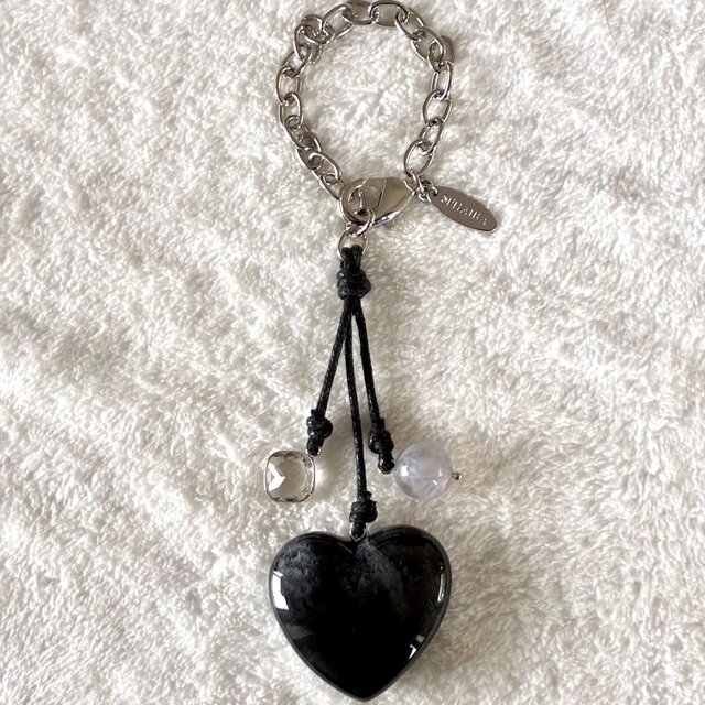 ミニマル ハートガラス チェーンバッグチャーム ブラック