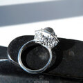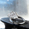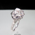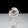 高い透明度と表面の照りを持つハーキマー ダイヤモンドを、唐草と透かし模様の台座にセットしたリング。