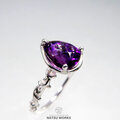 スーパーセブンタイプのクォーツを、唐草と透かし模様の台座にセットしたリング。