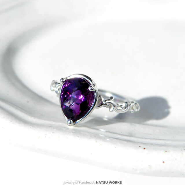 透明なアメジストにユニークなインクルージョンが映えます。