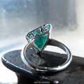 This ring features a captivating Chrysocolla Chalcedony / Gem Silica set in a delicate filigree base, accented with 18K gold balls.