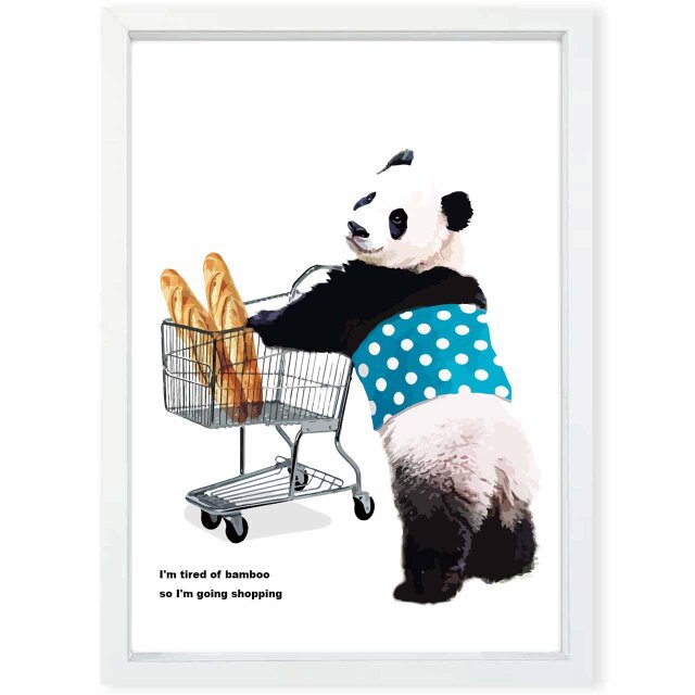 竹に飽きたパンダさん ちょっとお買いもの きょうはパンにしようキュートポスター。