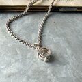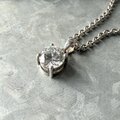 1粒のクリスタルグラスが煌めくシルバートーンチェーンネックレス。