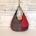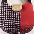 上質なウールがメインの暖かい手触りのバッグです。千鳥格子、ツィード、赤いウールを合わせました。両面デザインが違います。