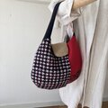 ウールのたまご型バッグ ワンハンド ル 赤の千鳥格子のコピー