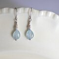 アクアマリンの淡いブルーとシルバービーズが清涼感を与えて爽やかな印象のピアスです。