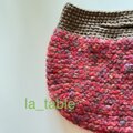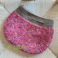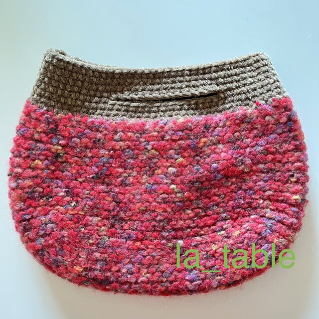 イタリアのファンシーヤーンでぐるぐると編み進めてバッグに仕立て、フェルト化しています。