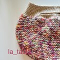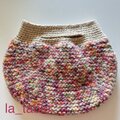 イタリアのファンシーヤーンでぐるぐると編み進めてバッグに仕立て、フェルト化しています。