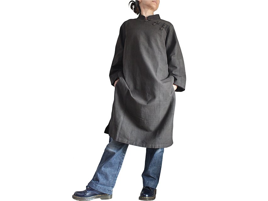 風合いあるジョムトン手織り綿製のシンプルなマンダリンガウン。