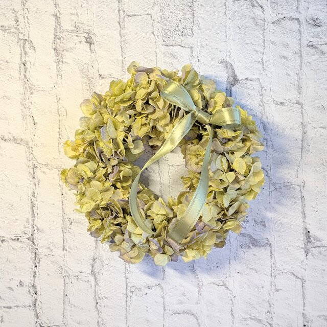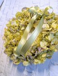 ずっと咲き続けるプリザーブドフラワーのアジサイリースです。