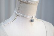 【受注製作】レジンアート ラウンドモチーフとタティングレースとサテンリボンのチョーカー〈無菌室の封印〉