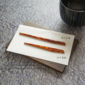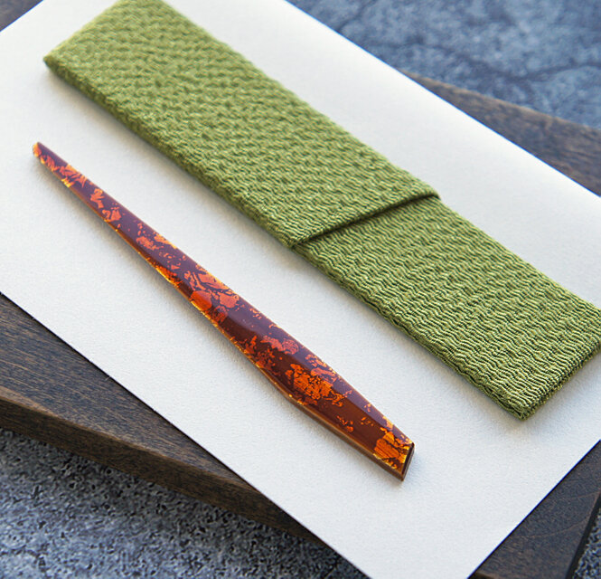 竹製に漆塗りの菓子切りと、