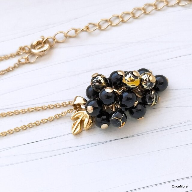 ミニ葡萄のペンダント(唐草MIX・ブラック)