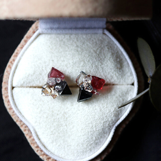 小粒のピアスは普段使いにもおすすめです。地球が生み出した原石の美しさを、ファッションとして楽しめるアクセサリー。空想の鉱物標本がかもす独特な存在感が、装いに余韻を残します。