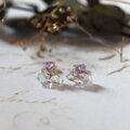 原石アメジストとフローライトのピアス w1719