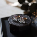 小粒のピアスは普段使いにもおすすめです。地球が生み出した原石の美しさを、ファッションとして楽しめるアクセサリー。空想の鉱物標本がかもす独特な存在感が、装いに余韻を残します。