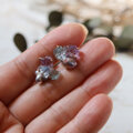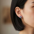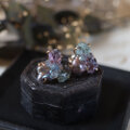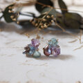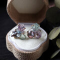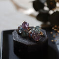 アメジスト、アクアマリン、グレーパールが共生する、創造上の鉱物「Unionite」のピアス。