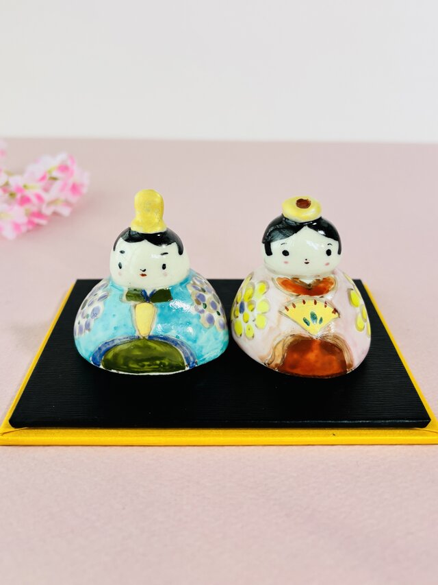 手作り、手描きの素朴で愛らしい陶器のお雛様です。