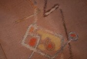シミや弱りを避け製作していますが、ワルツの着物服には、針穴や、小さなシミ、生地のよわり、絹の経年変化による全体的な黄ばみ等のダメージがあります。