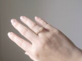 2m近いテグスを編み込んで作っていますので、金属などの硬い素材で作られたリングの様な安定感がありつつ、基本サイズより±1.5程のサイズでも着けて頂ける柔軟性があります。