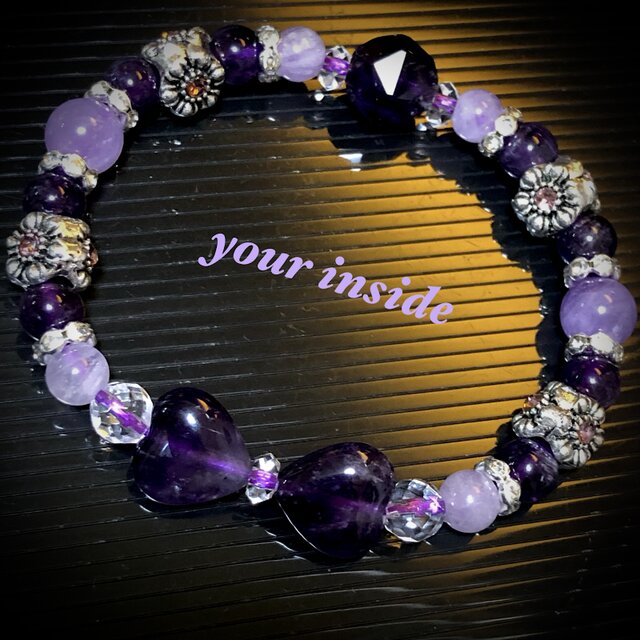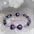 アメジスト ハートリボン ヨーロピアン 花形 天然石ブレスレット