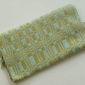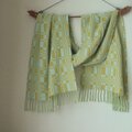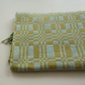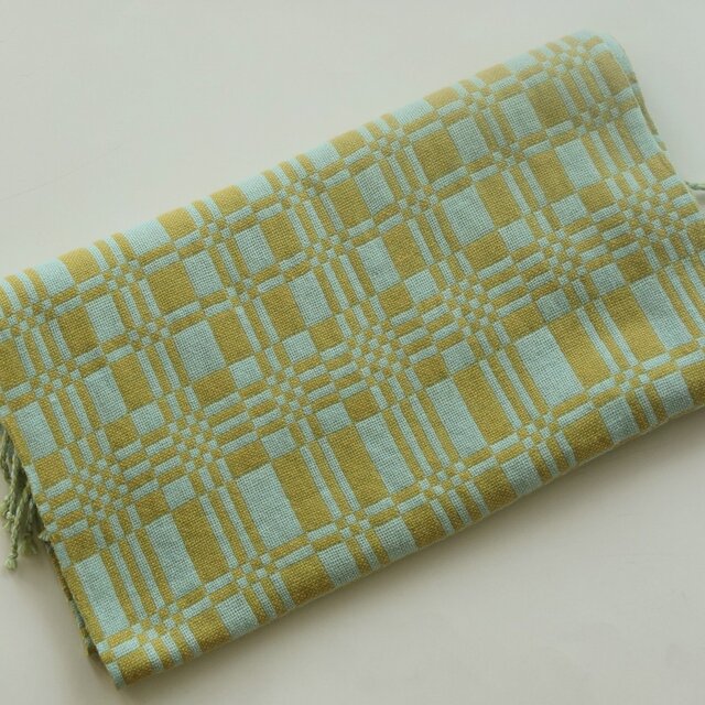 水色と若草色で幾何学模様に織りました。