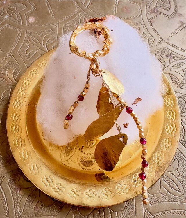 SV925+14KYG、真鍮、ガーネット、真鍮キャッチ