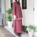 ・セットアップで: 同素材の羽織りブラウスと合わせて、ワンピース風スタイルに。